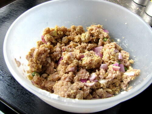 3. Shape into roughly ¼" thick discs. While shaping, if the mixture is too thick, dip fingers into a bowl of water and try to shape. If the mixture is watery, add some besan or rice flour.
