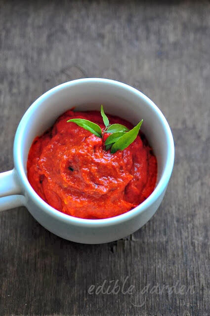Red Capsicum Chutney Recipe - Red Chutney with Capsicum (No Coconut)