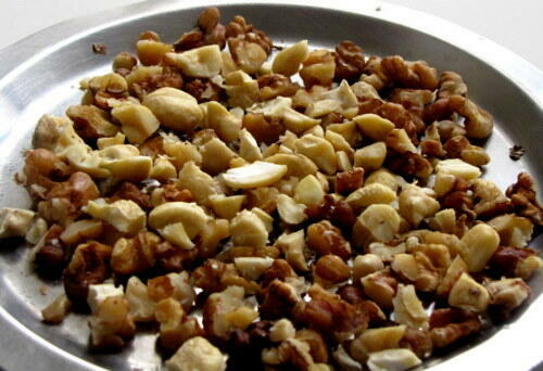 1 cup chopped nuts of your choice (I used walnuts and about 2-3 tablespoon of cashew nuts that I happened to have)