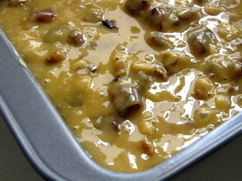 5. Fold in the flour-salt-baking powder mixture to the above gently until just mixed and no lumps remain. Then add the dredged dates and flour mixture continuing to fold in gently. This will form a thick batter.