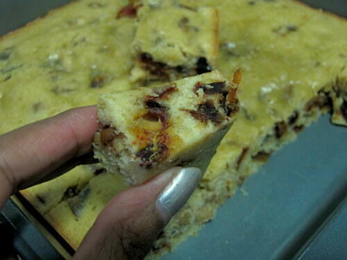 6. Pour into a greased cake or brownie pan and bake in a preheated oven at 350F/180C for 35-40 mins. The original recipe says 30 mins but mine were a bit under-baked so adjust according to your oven.