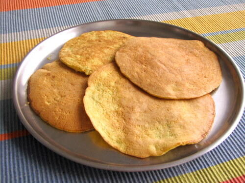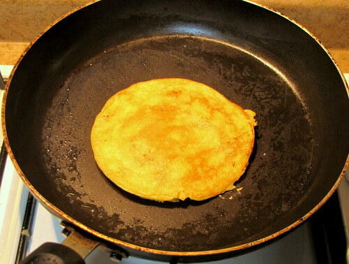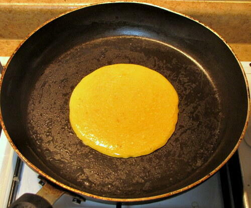 7. Make into small omelettes by pouring 2 tablespoon of the egg mixture at a time onto a lightly oiled pan.