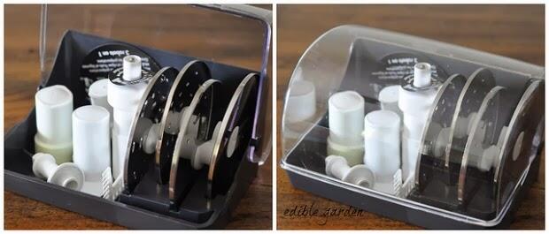 I leave the box of attachments open inside the nearest cupboard to where the processor is so I just have to open the cupboard and grab the blades I need. This is extremely handy, needless to say.