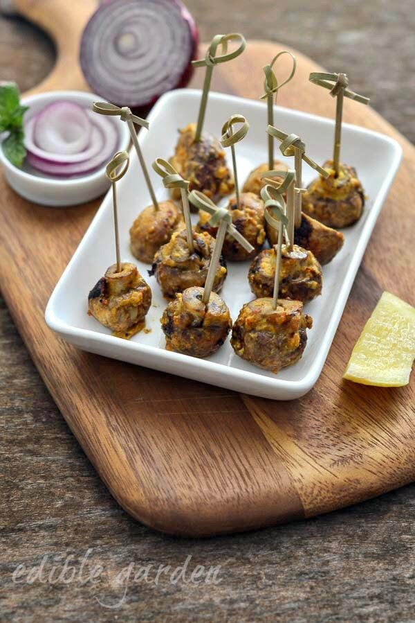 I love having people over for a meal and spend an inordinate amount of time planning the menu, adjusting the ingredients and dishes so there's something for everyone, and everything goes well together. Mushrooms are not a usual addition to my menu because I find that not many people love its texture and meatiness like TH and I do. If cooked right, mushrooms play really well with Indian spices and this mushroom tikka is a great example of that.