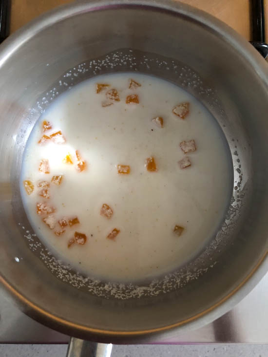 Bring the milk and water to a boil, add roasted semolina and the apricots.