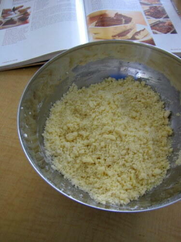 Gently mix with fingertips until the mixture resembles bread crumbs