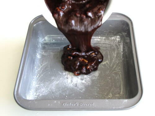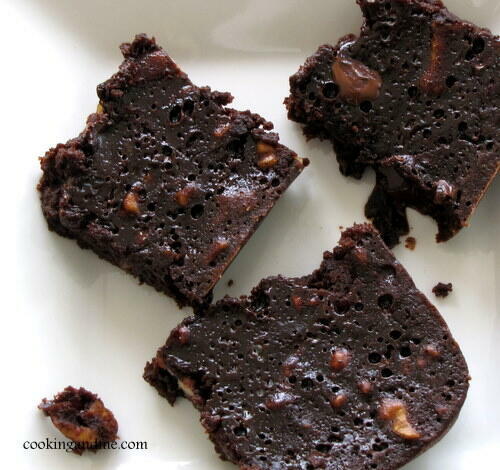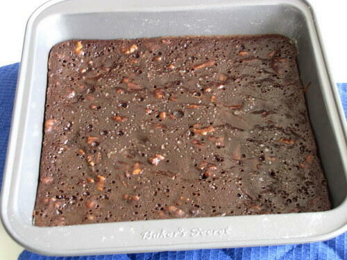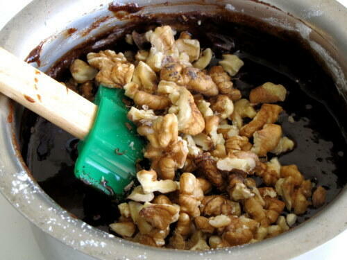 Cut into squares before serving. I think my walnut pieces were too big so I didn't get perfect squares but I couldn't care less. If was dense and yummy. If you have a nicer oven, you will get a crust like you see in professional brownies. My oven doesn't do that, unfortunately, but it was still awesome.
