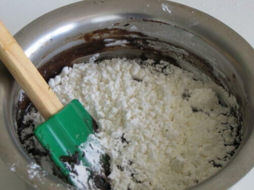 There we go, that's our super chocolate-heavy batter. Lick a little. Go ahead.